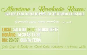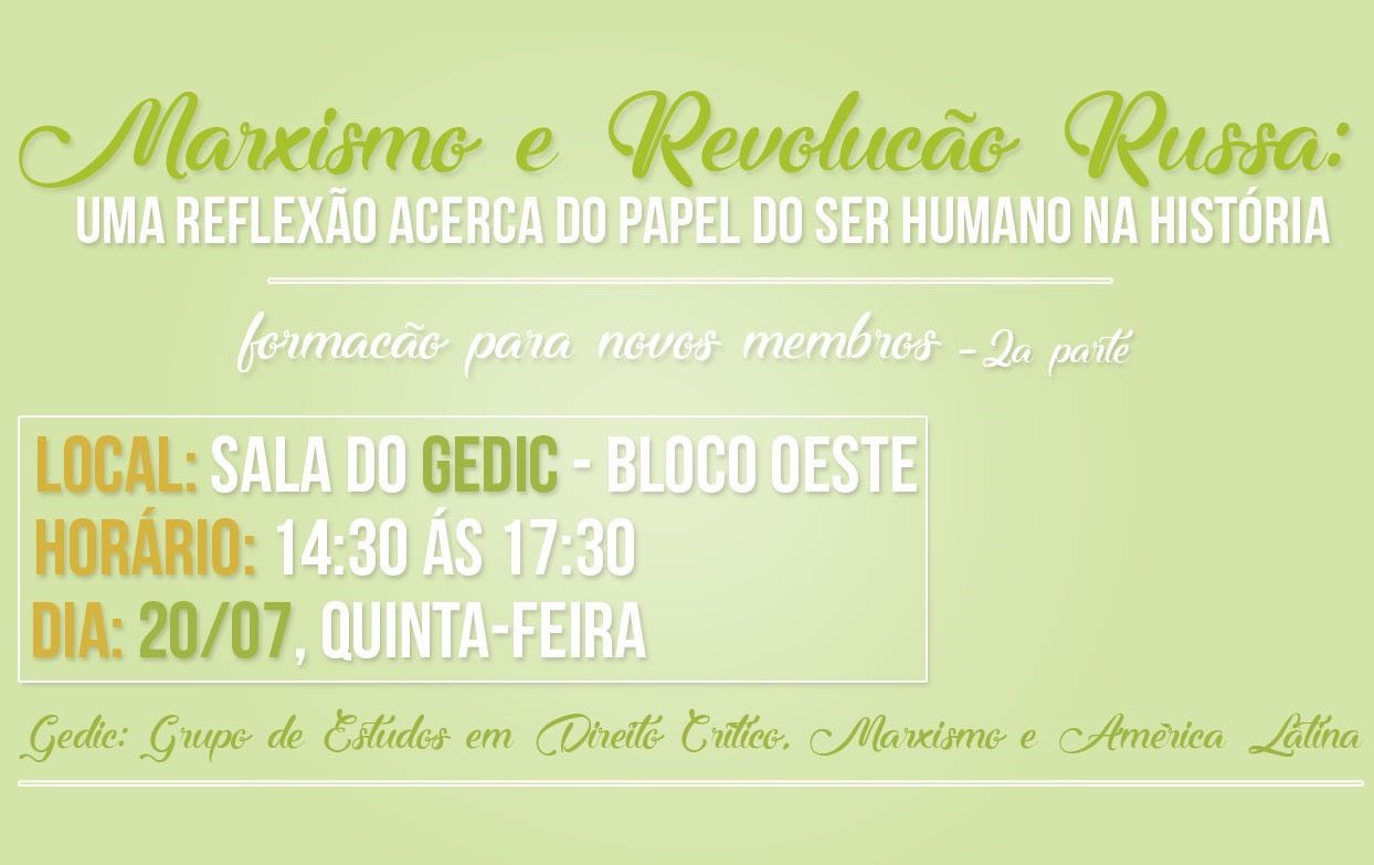 A segunda da série de três formações para novos membros, tratará de um dos pilares do grupo, o marxismo, debatendo a partir do texto “Revolução Russa” de Rosa Luxemburgo. A formação é aberta e a participação livre, caso haja interesse em conhecer o grupo ou apropriar-se do debate proposto.