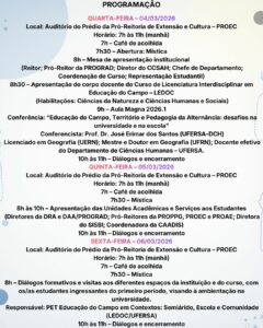 O curso de Licenciatura Interdisciplinar em Educação do Campo (LEDOC), da Universidade Federal Rural do Semi-Árido (UFERSA), convida estudantes ingressantes e veteranos para a Aula Magna e Acolhida do semestre 2026.1.
