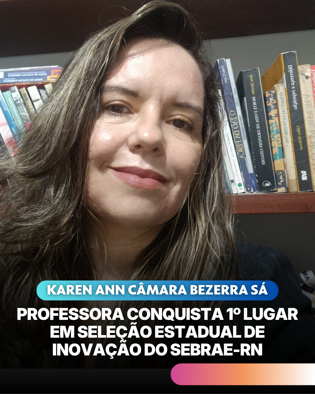 A professora Karen Ann Câmara Bezerra Sá, do curso de Administração do Centro de Ciências Sociais Aplicadas e Humanas (CCSAH), conquistou o 1º lugar na região Oeste na seleção do Edital nº 01/2026 do Projeto Conexão Empreendedora: Professores Embaixadores da Inovação, promovido pelo Sebrae-RN.